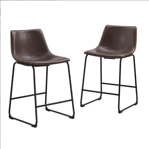 Industrial Faux Leather Counter Stools, Set Of 2 - Brown